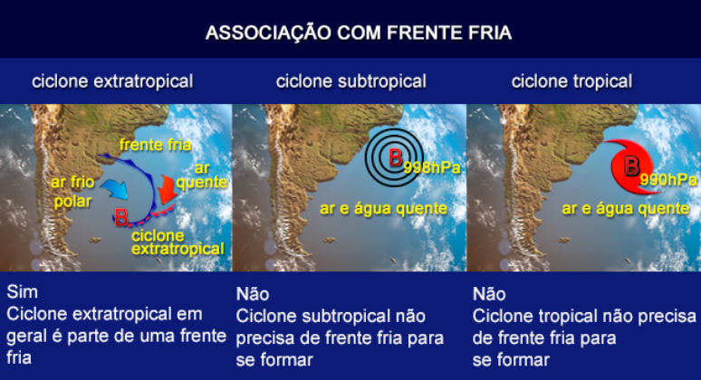 Quais as diferenças entre ciclone extratropical, subtropical e tropical?