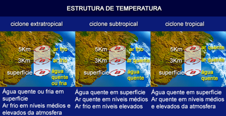A temperatura do interior define o tipo de ciclone