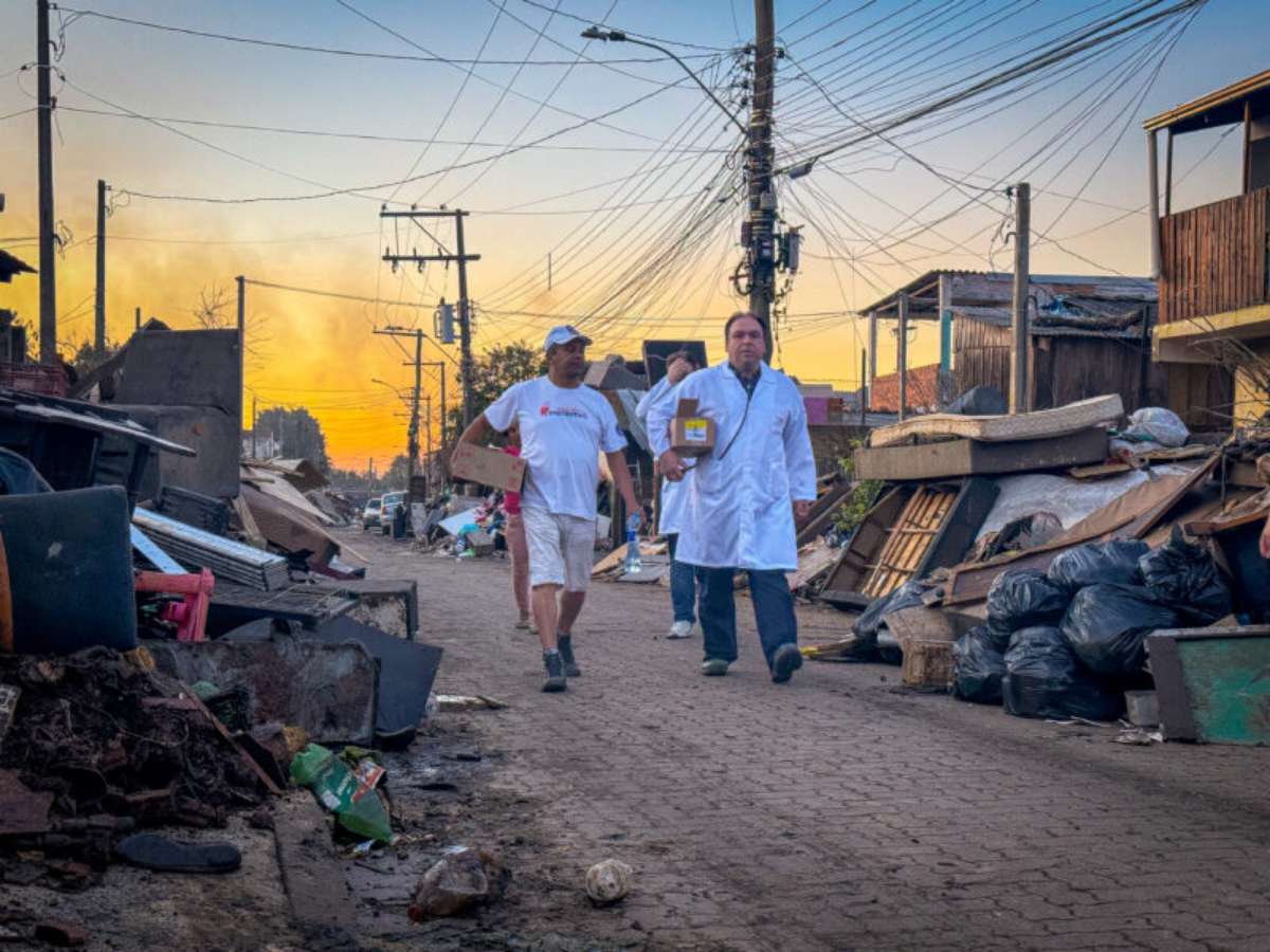 Com o processo de limpeza das casas e o acúmulo de resíduos nas ruas, o risco de doenças infectocontagiosas aumenta significativamente. Junto com outros médicos, Dr. Thiago, têm visitado as regiões afetadas pelas enchentes para alertar a população sobre a necessidade de prevenção, evitando problemas de saúde ocasionados pelo contato com a água suja das chuvas e com os resíduos das casas, que podem conter uma série de bactérias e vírus.