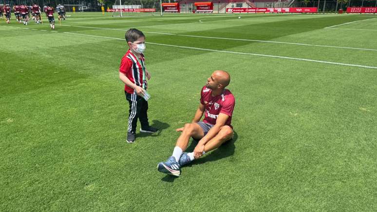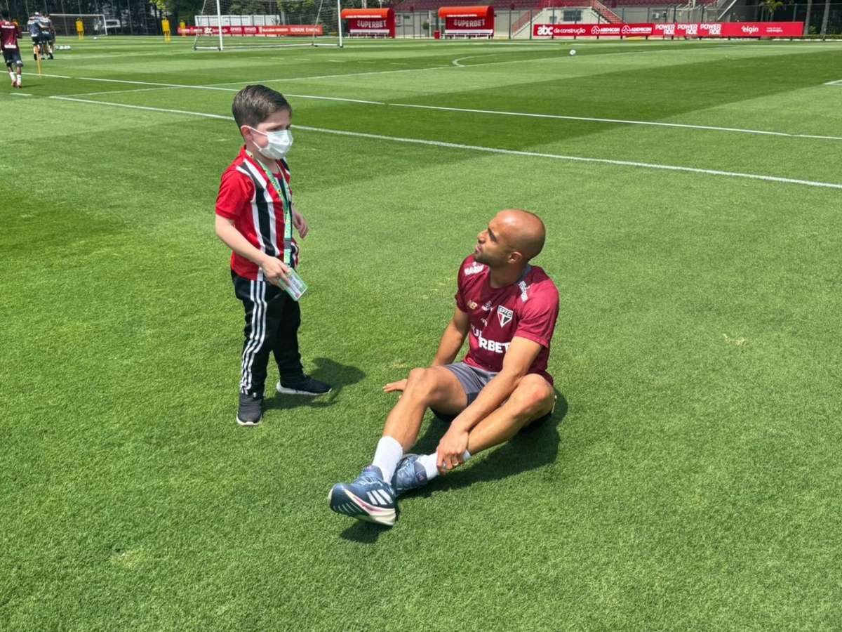 Menino com Distrofia Muscular de Duchenne visita CT do São Paulo a convite de Lucas Moura