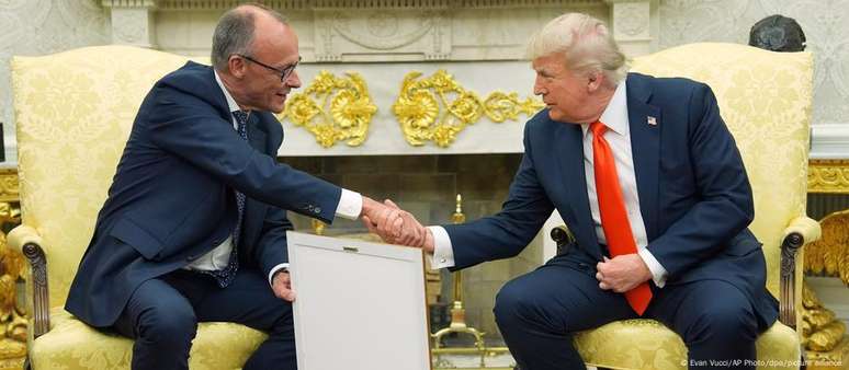 No encontro, Merz ainda presenteou Trump com um exemplar da certidão de nascimento do avô do presidente americano, Friedrich Trump, que nasceu em 1869 na Alemana e que depois imigrou para os EUA.