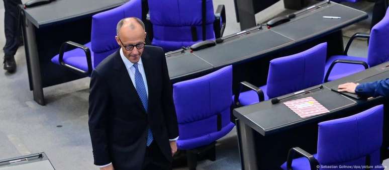 Pela primeira vez na história alemã do pós-guerra, um candidato a chanceler federal não consegue o número mínimo de votos no primeiro turno da votação no Parlamento. Resultado expõe racha na nova coalizão de governo.O líder conservador da União Democrata Cristã (CDU), Friedrich Merz, não conseguiu o número necessário de votos para ser eleito o próximo chanceler federal da Alemanha no primeiro turno da votação realizada no Parlamento alemão (Bundestag) nesta terça-feira (06/05). O político recebeu 310 votos favoráveis, seis a menos do exigido para alcançar a maioria absoluta. Uma nova votação está prevista para hoje.