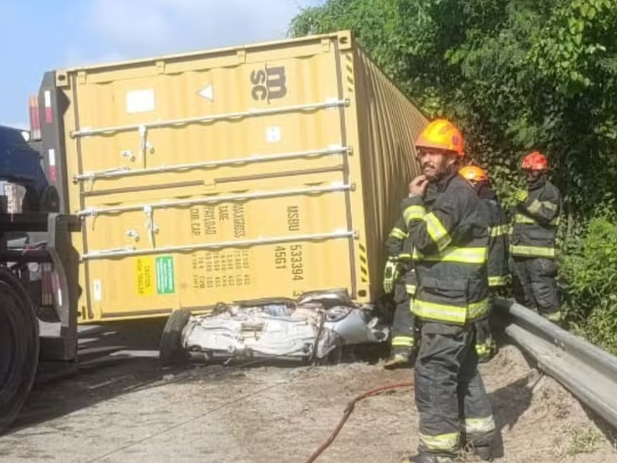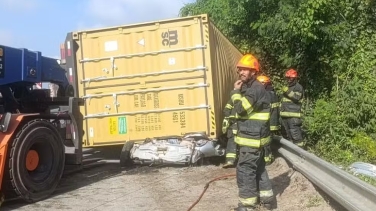 Um grave acidente ocorrido na manhã deste sábado (19) deixou três mortos na rodovia Padre Manoel da Nóbrega, na altura de São Vicente, no litoral de São Paulo. Por volta das 8h40, uma carreta que transportava um contêiner tombou na pista sentido Praia Grande, atingindo um carro que estava parado no acostamento. As três pessoas que estavam no veículo não resistiram.