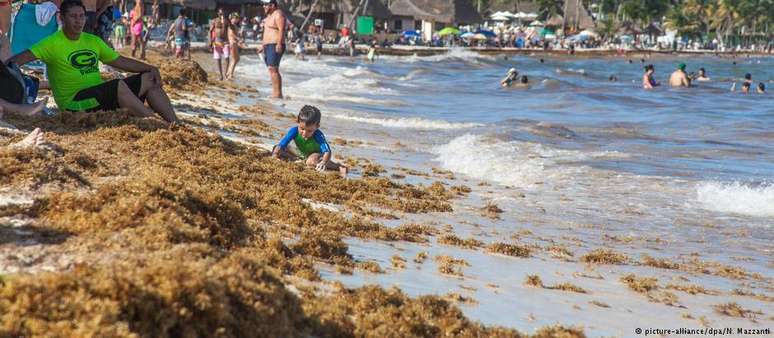 Invasão da espécie, que emite mau cheiro e muda a cor do mar, é associada ao aquecimento global. Sargaço possui ainda substâncias tóxicas que causam a morte de peixes.A Secretaria de Meio Ambiente e Recursos Naturais do estado mexicano de Quintana Roo anunciou nesta quinta-feira (09/08) que está construindo barreiras no mar ao longo da região conhecida com Riviera Maya para conter a invasão de sargaço nas praias.
