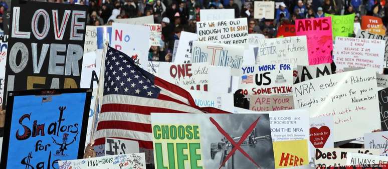 Convocados por estudantes sobreviventes do massacre na Flórida, atos estão programados em 800 cidades do país. Em Washington, é esperado um dos maiores protestos desde a Guerra do Vietnã.Milhares de americanos saíram às ruas em diversas cidades do país neste sábado (24/03) para pedir um maior controle de armas. Convocado por estudantes sobreviventes do recente massacre na Flórida, a expectativa é que os protestos sejam a maior manifestação antiarmas nos EUA dos últimos anos.