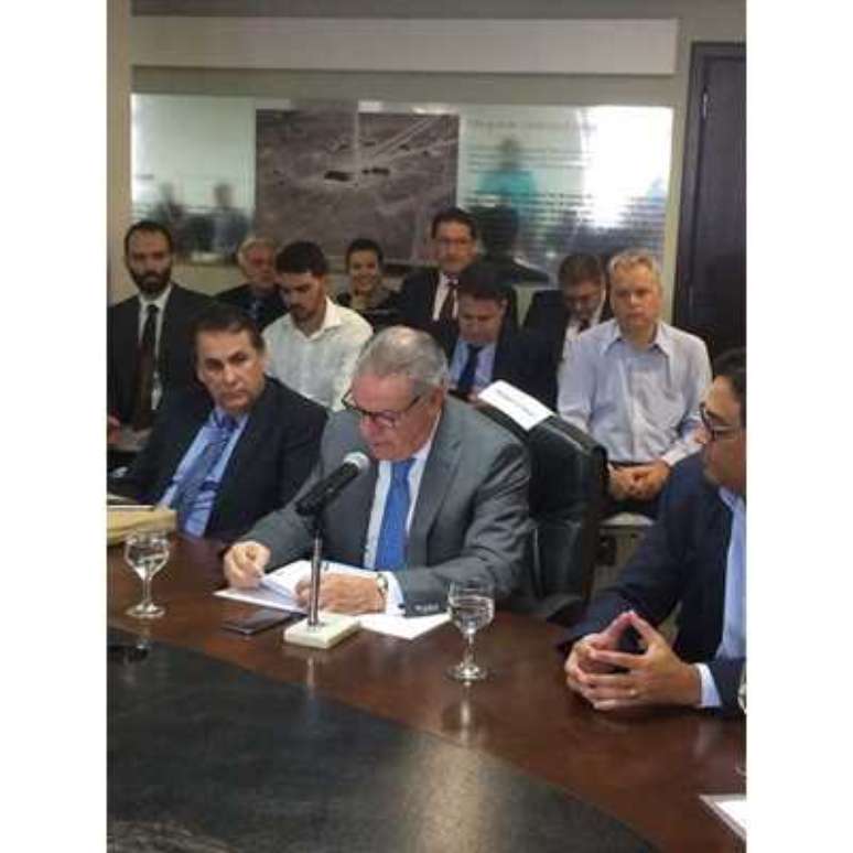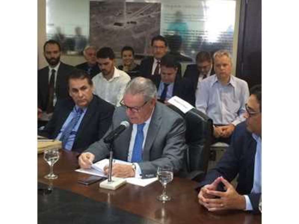 O diretor-presidente do Instituto Brasileiro de Mineração IBRAM, Walter Batista Alvarenga, e o diretor de assuntos minerários do IBRAM, Marcelo Ribeiro Tunes, estiveram presente à solenidade no palácio do governo estadual, em Goiânia.