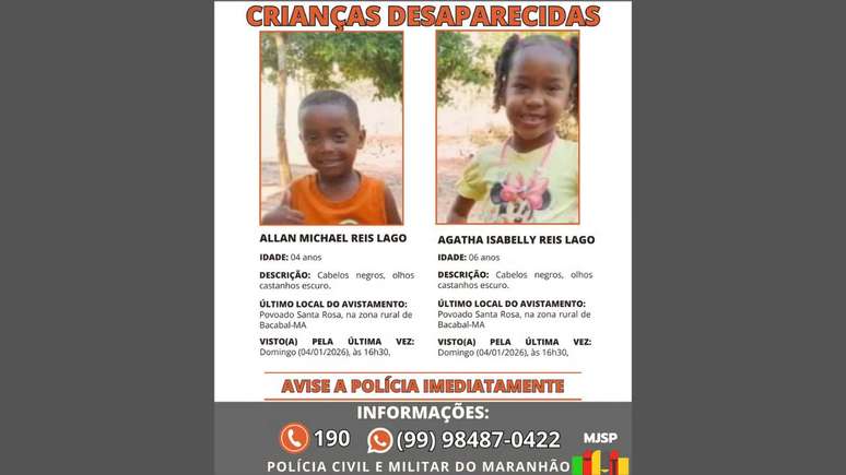 Ágatha Isabelly, de 6 anos, Allan Michael, de 4, e o primo Anderson Kauan, de 8 anos, desapareceram após saírem de casa para brincar. O caso ocorreu em Bacabal (MA)
