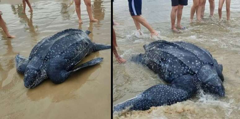 Tartaruga-de-couro, também conhecida como tartaruga-gigante, foi encontrada sem vida na praia de Itapeva Norte, em Torres, Litoral Norte do RS. A descoberta ocorreu na manhã de sexta-feira, 29/12, intrigando banhistas e especialistas, pois a causa da morte permanece desconhecida.
