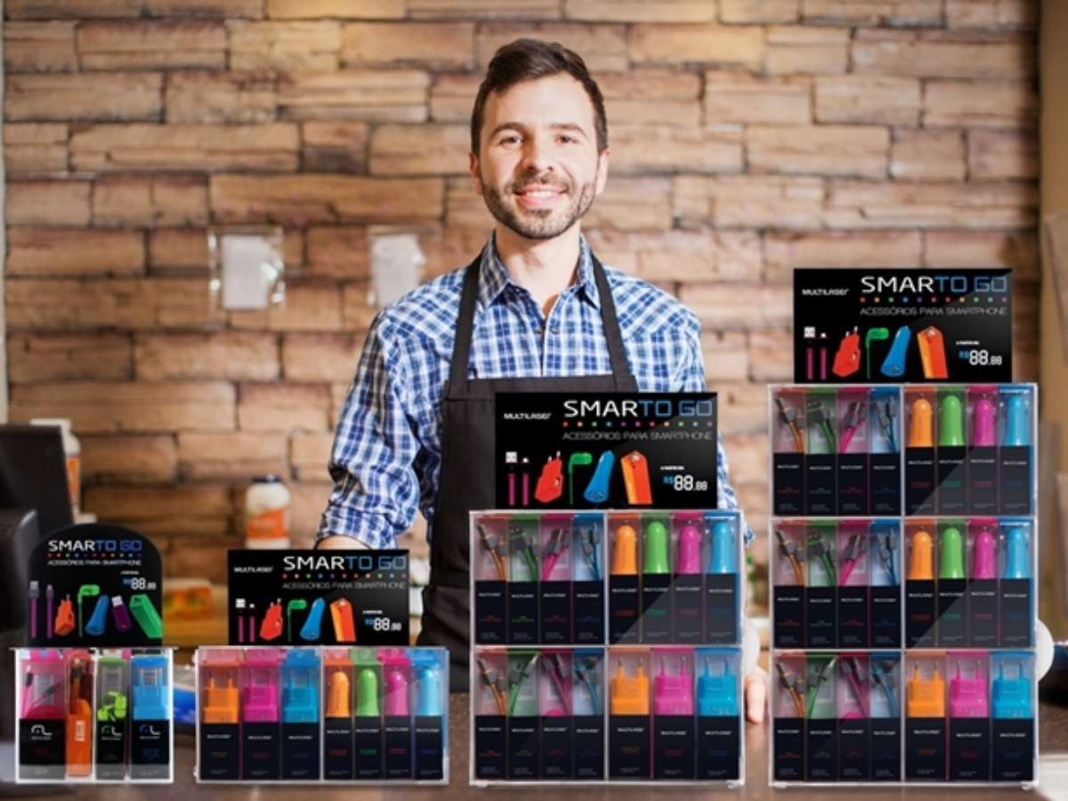 Acessórios para Smartphones: Através da marca SMARTOGO, a franquia possui investimento inicial de R$ 6.999,90 e o prazo médio do retorno de 3 a 6 meses. Nesse pacote inicial, a Multilaser oferece 5 displays, podendo instalar cada unidade em cada ponto de venda diferente. O display possui 71 produtos, distribuídos entre cabos carregadores, carregadores automotivos e de parede. Demais produtos da linha, podem ser adquiridos na reposição. Todos esses itens são campeões de venda na Multilaser.