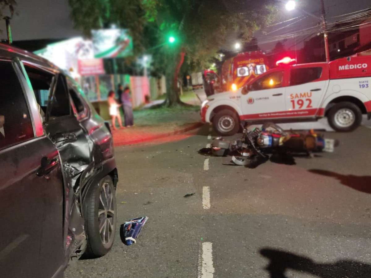Um motociclista ficou gravemente ferido após bater contra um Corolla Cross no bairro Mercês, em Curitiba, na noite desta quinta-feira (25). O acidente aconteceu no cruzamento das ruas Dom Alberto Gonçalves e Mamoré.