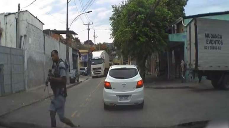 Os bandidos passaram a interrogá-lo, questionando por que estava ali. No vídeo, é possível ouvir o motorista implorando: "Eu estou trabalhando! Perdão, perdão, mano! Sou Uber! Pode ver aí que estou trabalhando para a moça! Perdão, mano, de verdade! Perdão, não olhei! Eu estava olhando o caminho aqui e não vi! Faço o quê? Meia volta?".