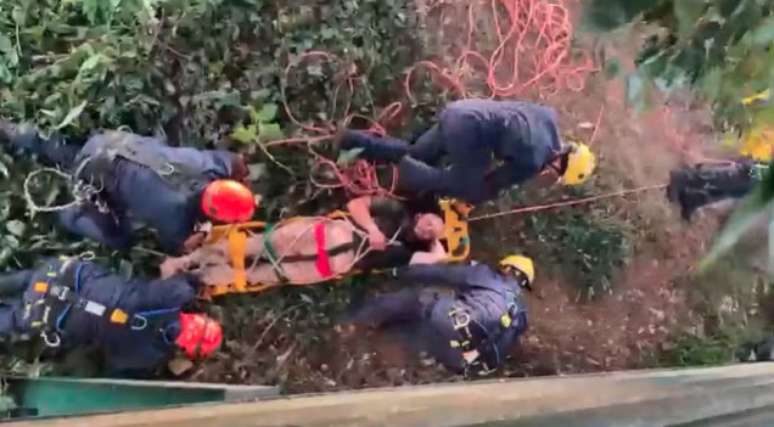 Para retirar a vítima do local, os bombeiros precisaram imobilizá-lo em uma maca e utilizar cordas para içá-lo de volta à rodovia. Apesar do tempo que permaneceu no local, o homem estava consciente e com ferimentos leves.