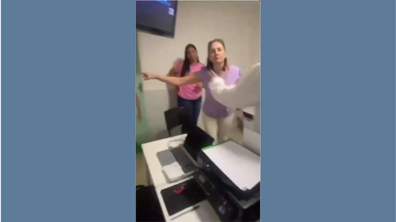 Amanda chegou a pedir que a mulher deixasse a sala, mas ela se recusou. "Quando ele foi colocar o transdutor dentro de mim, ela puxou com toda força do mundo, sem consentimento. Foi aí que eu comecei a filmar, pelo fato de ela ter tocado em mim", revelou a vítima. No vídeo, a esposa do médico passa a dizer "saia daqui" várias vezes, dirigindo-se à paciente. Ao perceber que ela não sairia da sala, a mulher começa as agressões.
