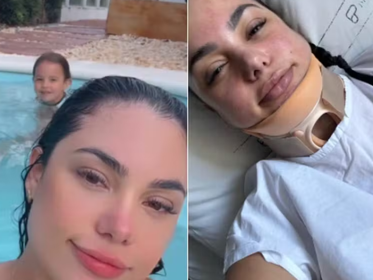 Ao ser resgatada, Flaviane não conseguia se mover. "Sentia uma dor insuportável na coluna. Chamei uma ambulância, pois não tinha controle sobre meu corpo", relembrou. No hospital, exames revelaram uma fratura na cervical, nos níveis C6 e C7. "Disseram que eu corria risco de ficar tetraplégica e precisava de cirurgia urgente", afirmou. Ela foi transferida para Porto Alegre, onde passou cinco dias internada, aguardando o procedimento. "Foi um pesadelo. Um dia de lazer virou a pior experiência da minha vida", desabafou.