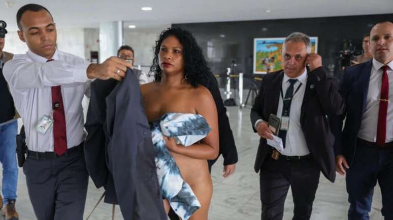 Uma mulher em suposto surto psicótico entrou no Palácio do Planalto nesta manhã, tirou toda a roupa e circulou nua pelo térreo do saguão. Segundo consta, queria uma audiência com o presidente Lula da Silva. Mas não disse a demanda. Os seguranças já controlaram a situação. pic.twitter.com/gw59pP7AsF