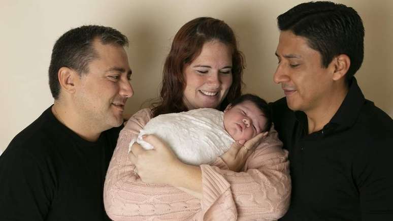 "Acabei de construir [uma] família.. a família de outra pessoa!", conta ela rindo, ainda se recuperando na sala de parto depois de entregar o recém-nascido aos pais do bebê: um casal gay da Espanha.