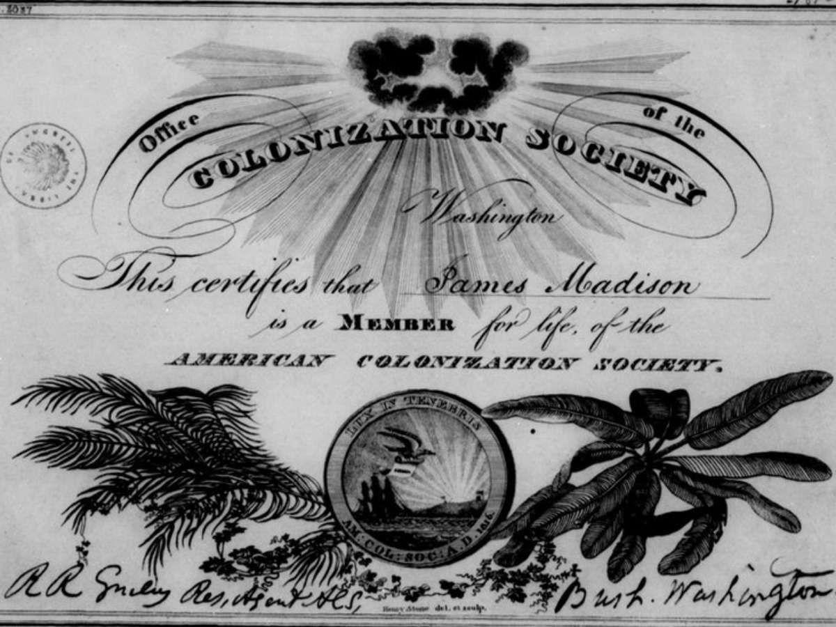 Criada meio século antes da abolição da escravidão no país, a ACS contava com o apoio de nomes ilustres, entre eles o presidente na época, James Madison (1809-1817), o ex-presidente Thomas Jefferson (1801-1809) e os futuros presidentes James Monroe (1817-1825) e Andrew Jackson (1829-1837).