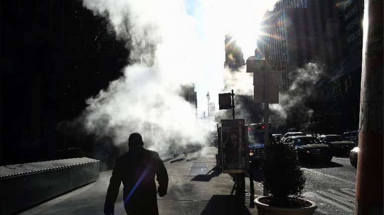 Trata-se do mesmo vapor que viaja mais discretamente por túneis e tubulações de edifícios emblemáticos da cidade, como o Empire State Building, o terminal da Grand Central e a sede das Nações Unidas.