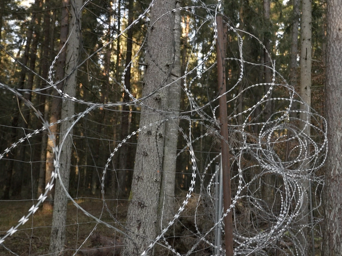 No meio da floresta, há uma cerca de arame farpado de quase 200 quilômetros de distância construída pelo governo polonês em 2022 em um esforço para fortalecer suas fronteiras e as de toda a Europa.