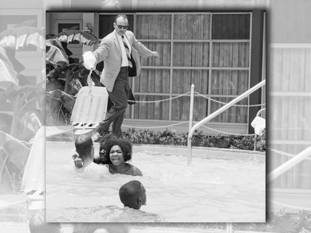 A foto foi tirada em 18 de julho de 1964 em um hotel na cidade de Saint Augustine, na Flórida.