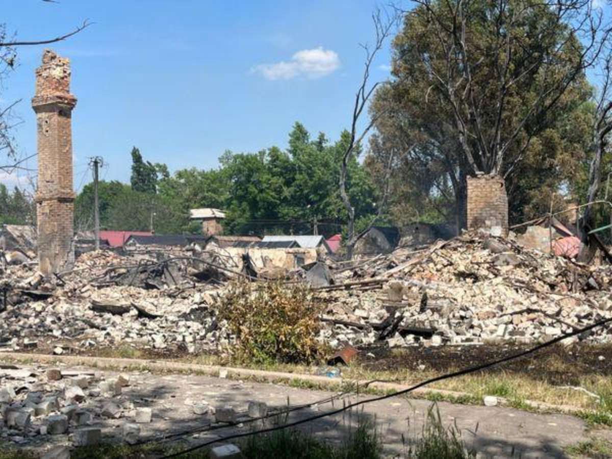 Uma bomba planadora de 250 kg atingiu o principal edifício administrativo da cidade e destruiu três blocos residenciais. Nossa visita ocorre um dia após a explosão, mas ainda se vê fumaça saindo de parte dos destroços.