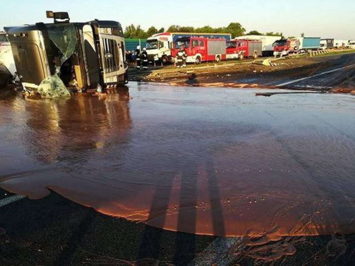 Acidente com caminhão cria rio de chocolate na Polônia