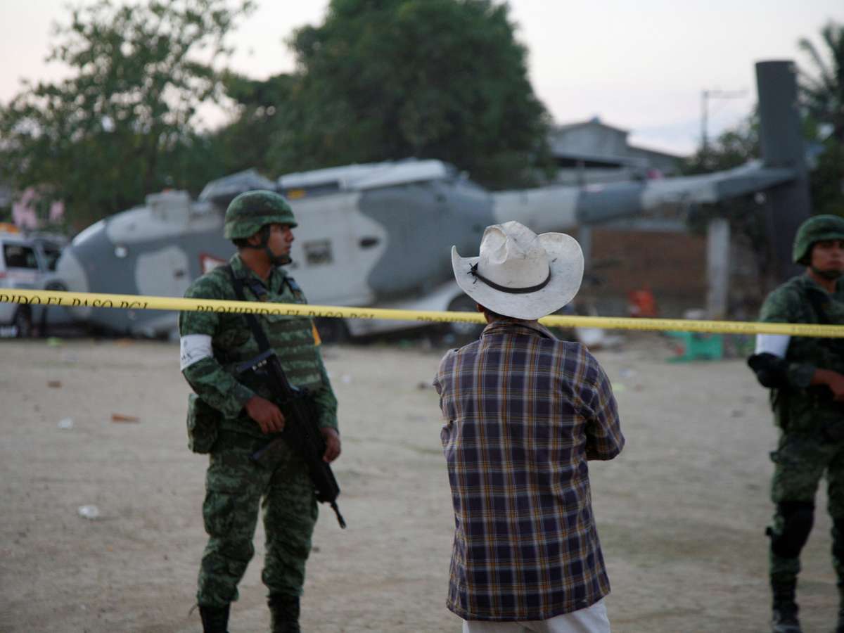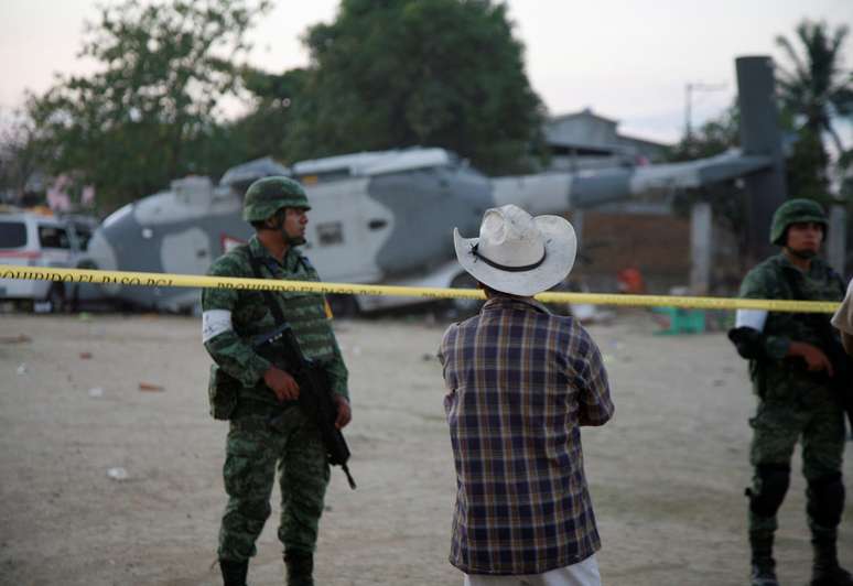 Pelo menos 13 pessoas em terra, incluindo 3 crianças, morreram quando um helicóptero militar que transportava autoridades do México para avaliar danos causados por um terremoto caiu numa cidade no sul de Oaxaca, disseram autoridades neste sábado.