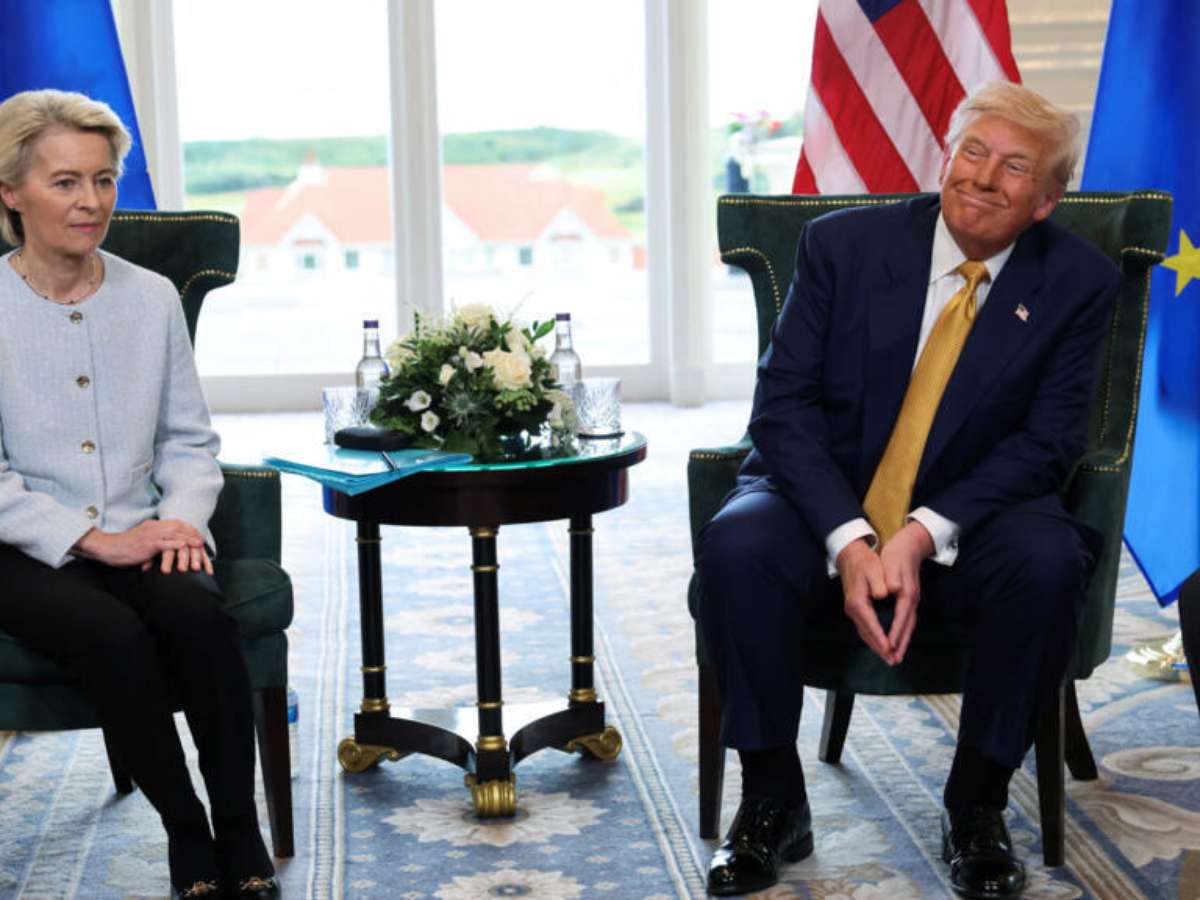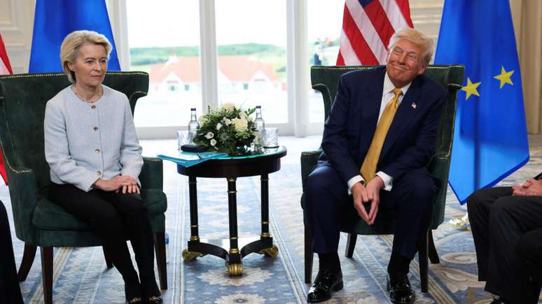 Discutido em Turnberry, na Escócia, o acordo foi concluído após uma reunião de uma hora entre Trump e a presidente da Comissão Europeia, Ursula von der Leyen, e tem gerado fortes críticas no bloco europeu.