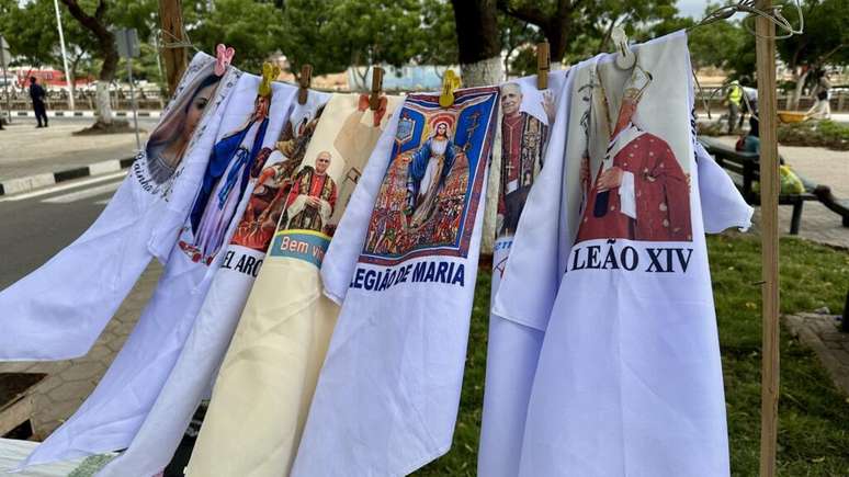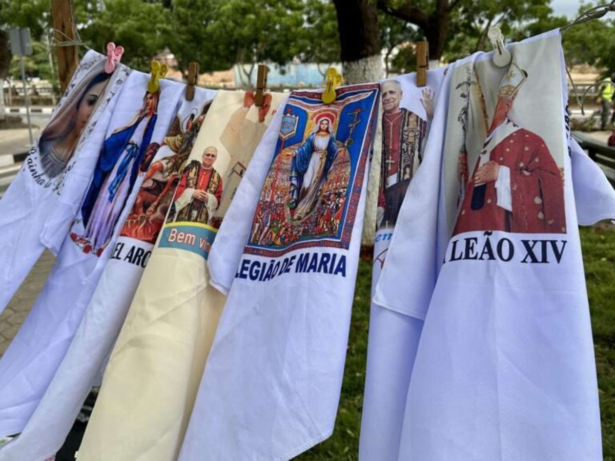 Na Paróquia de Nossa Senhora de Fátima, em Luanda, o clima é de muita expectativa à medida que se aproxima a visita do papa Leão XIV. Na entrada, uma imagem do pontífice dá as boas-vindas aos fiéis, enquanto vendedoras oferecem todo o tipo de artigos com referência ao líder da Igreja Católica.