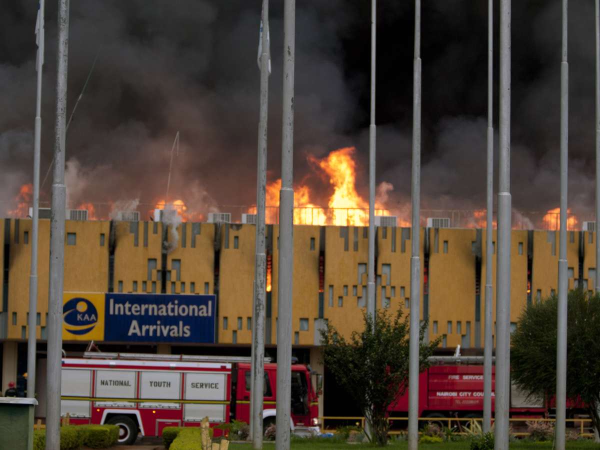 O JKIA foi isolado por membros das forças de segurança, as operações aéreas foram suspensas por causa do incêndio e os voos que tinham aterrissagem prevista em Nairóbi foram desviados para o Aeroporto Internacional de Mombaça (sul). Segundo o jornal Daily Nation, o terminal de chegadas do principal aeroporto da capital queniana ficou destruído.