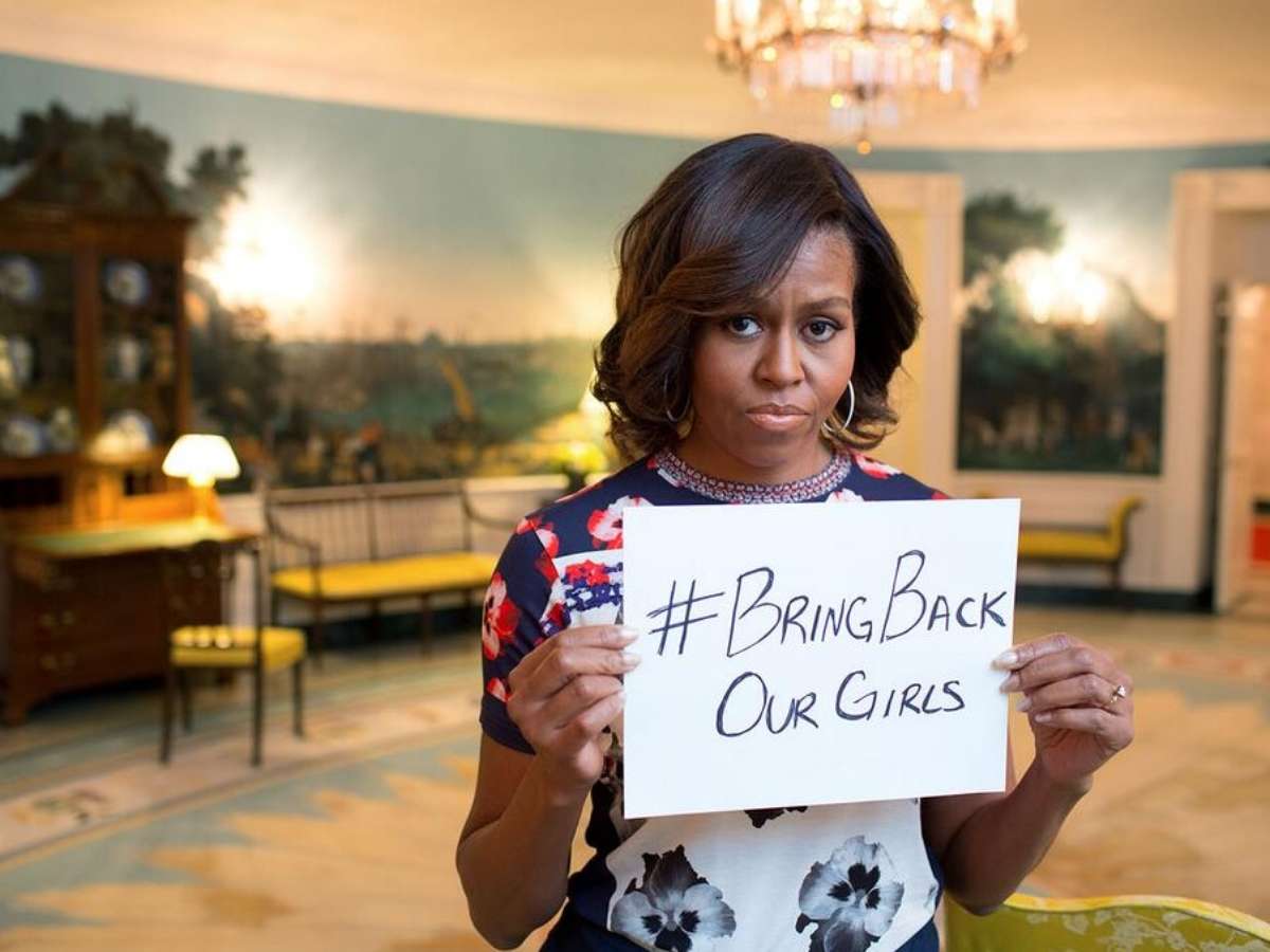 A campanha virtual #BringBackOurGirls ficou famosa em todo o mundo e conseguiu apoio de celebridades e líderes mundiais como o primeiro-ministro britânico, David Cameron, e a primeira dama americana, Michelle Obama.