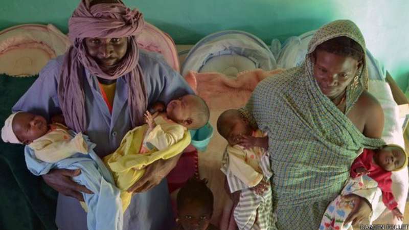 "Temos uma pessoa que nos ajuda com as crianças, mas está sendo muito difícil dormir", diz Taghri. Dois dos gêmeos (Farim e Oumar) são muito calmos, mas os outros dois (Ousmane e Aboubakrine) são bastante agitados e só param de chorar quando ganham colo.