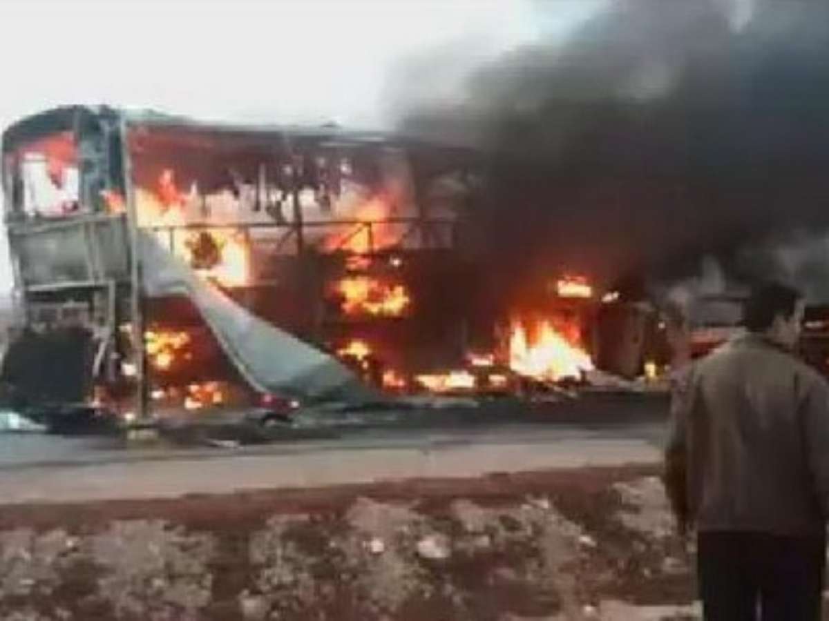 Por razões desconhecidas, o ônibus bateu de frente em um caminhão-reboque, que aparentemente transportava produtos inflamáveis, e o ônibus ficou completamente queimado, como pôde ver-se em algumas imagens publicadas na internet.