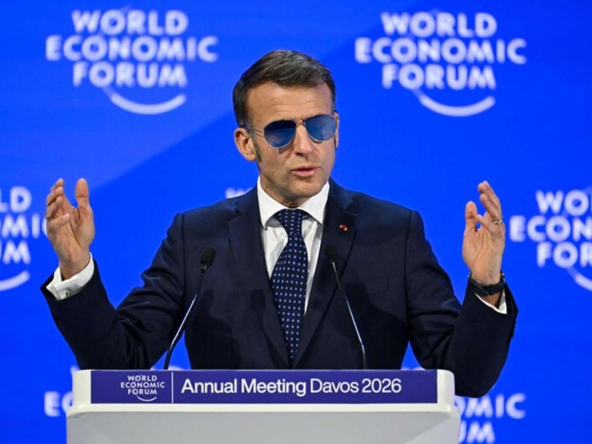 Macron discursou no Fórum Econômico Mundial de Davos, na Suíça, poucas horas depois de Trump expor nas redes sociais uma mensagem privada do líder francês questionando o presidente americano sobre a Groenlândia e sugerindo realizar uma cúpula do G7 em Paris.