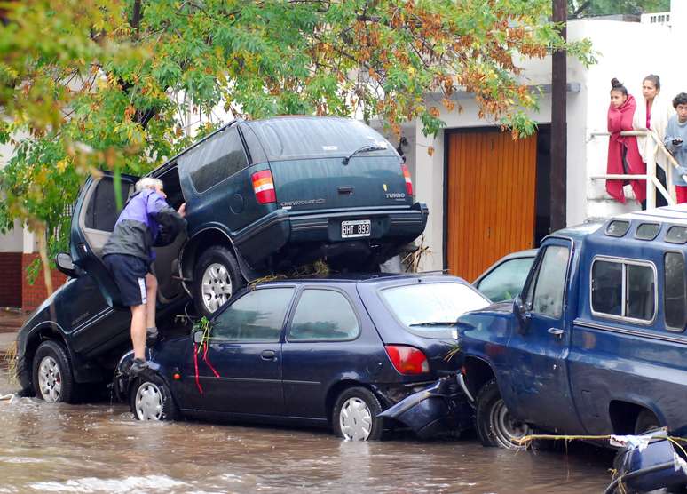 3 de abril - Em La Plata, a força da água carregou carros