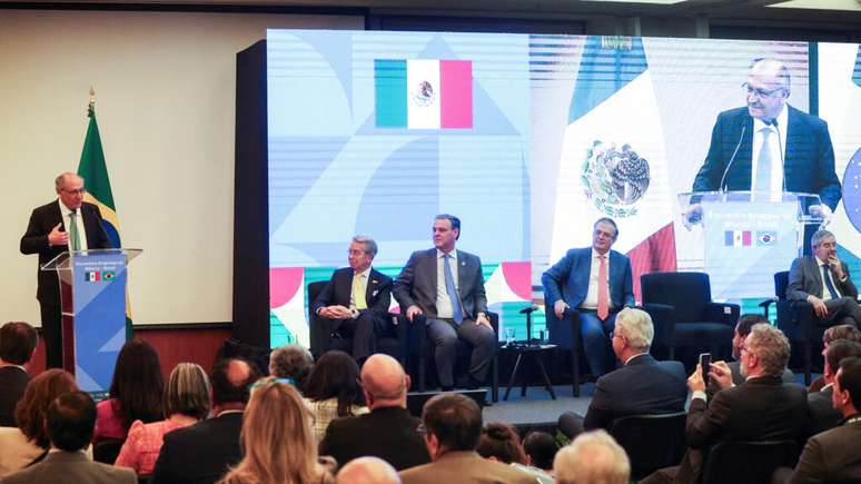 Na manhã de quarta-feira (27), Geraldo Alckmin se encontrou com empresários brasileiros, representantes dos setores da indústria, serviços, agronegócio, entre outros; além do embaixador do Brasil no México, Nedilson Jorge. Durante a reunião, ele falou sobre o objetivo da missão ao México: