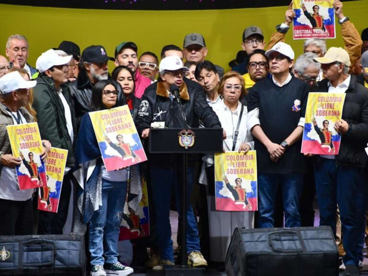 Bandeiras colombianas e estandartes com a imagem de Simón Bolívar, vuvuzelas nas cores nacionais, cantos patrióticos e slogans inflamados contra uma eventual intervenção americana: na quarta-feira, 7 de janeiro, a praça Bolívar vibrava com fervor nacionalista. Mais de 30 mil pessoas, segundo estimativas, entoavam "Es Colombia, no colonia" ("É Colômbia, não colônia"). Elas defendiam a soberania do país diante das ameaças de Washington, reiteradas na noite do sequestro do presidente venezuelano, Nicolás Maduro.