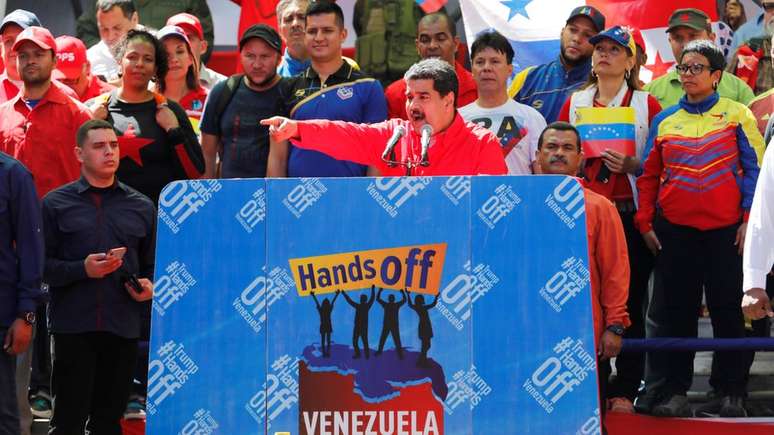 Diante de uma multidão neste sábado, Maduro declarou, sobre o presidente colombiano, Iván Duque, que ele "parece ter cachinhos, mas eu diria: 'você é o diabo'. E você vai se arrepender de se meter com a Venezuela".