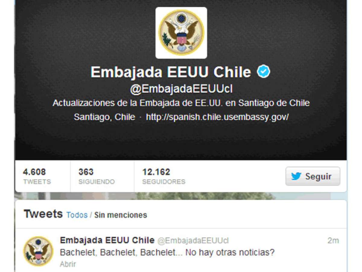 Embaixada dos EUA no Chile protesta "Bachelet... Não há outras notícias?"