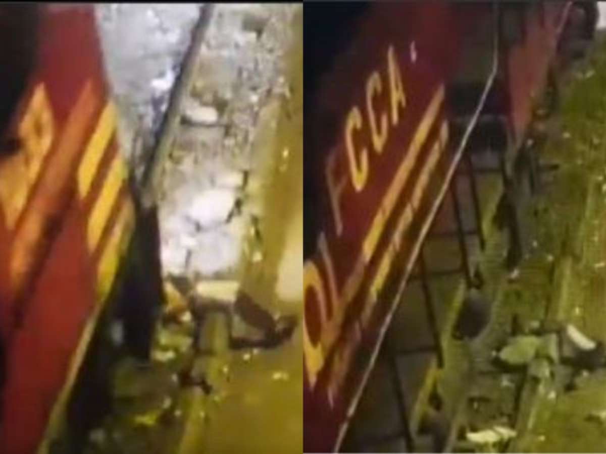Câmeras de segurança registraram o momento em que um homem adormecido nos trilhos foi atropelado por um trem de carga em Lima