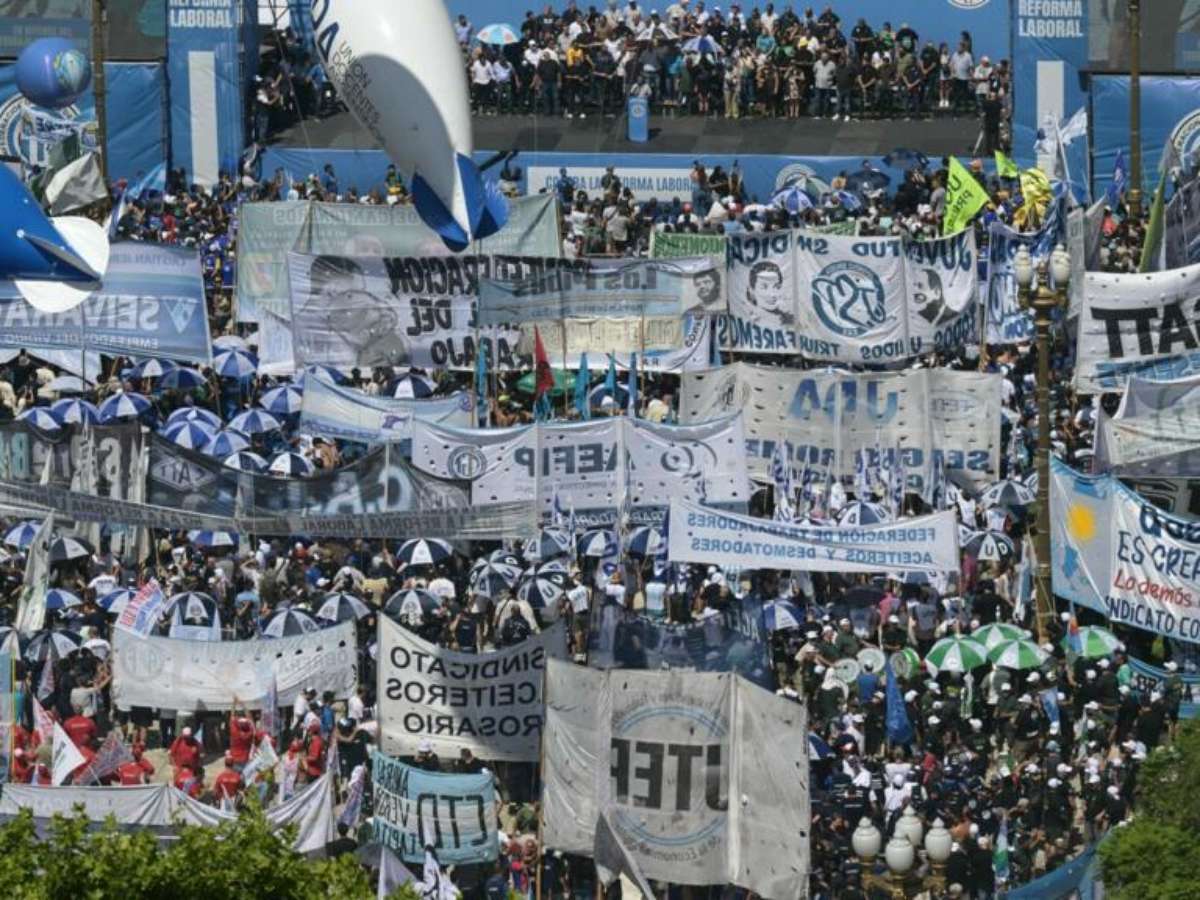 Milhares de argentinos se manifestaram nesta quinta-feira (18) nas ruas de Buenos Aires, na primeira grande mobilização contra as propostas de reforma trabalhista defendidas pelo presidente ultraliberal Javier Milei, desde sua recente vitória nas eleições de meio de mandato.