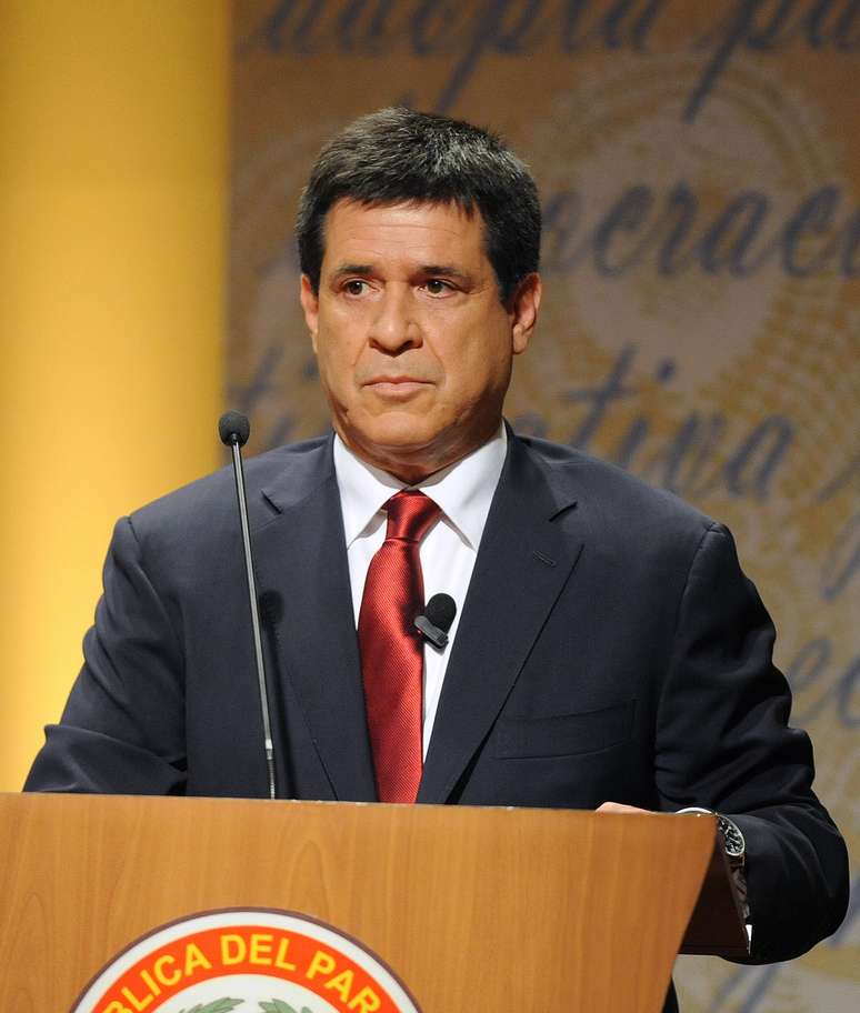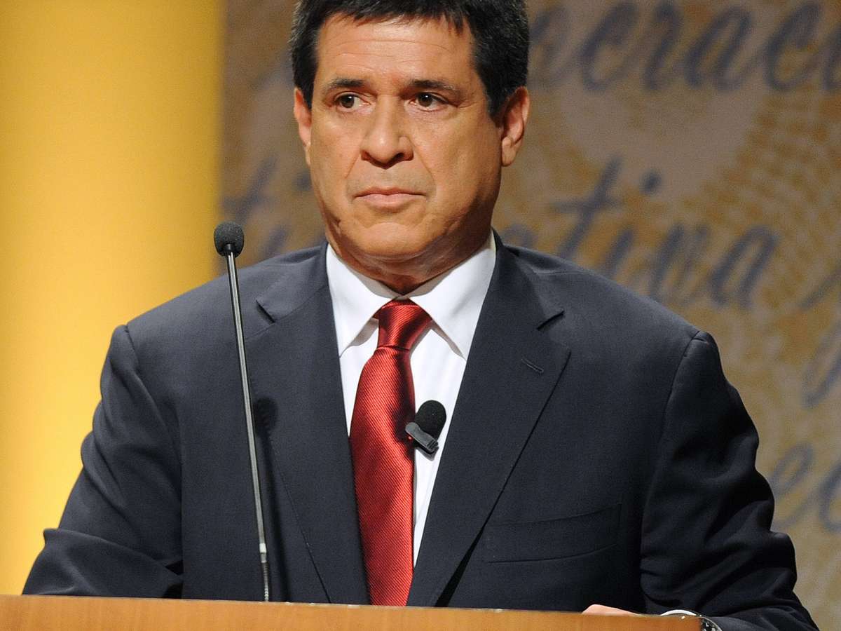 Cartes, um milionário de 56 anos, aparece com 37,6% de apoio contra 31,7% do advogado de 50 anos Efrain Alegre, do Partido Liberal, segundo levantamento feito junto a 1.846 eleitores pela First Analysis and Research. O Partido Liberal, de centro-direita, assumiu a Presidência, em junho, quando o Congresso aprovou o impeachment do presidente de esquerda Fernando Lugo, ex-bispo católico.