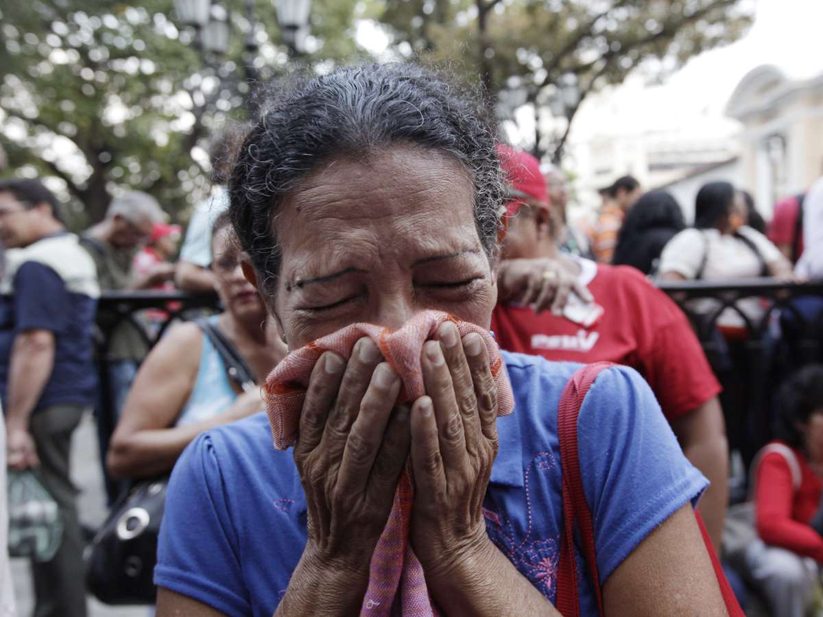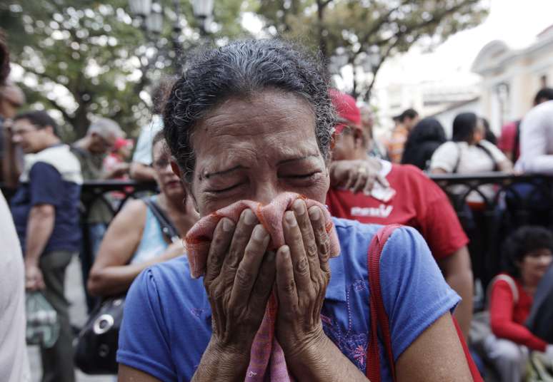 5 de março - Venezuelanos choram após ouvir pronunciamento do vice-presidente do país