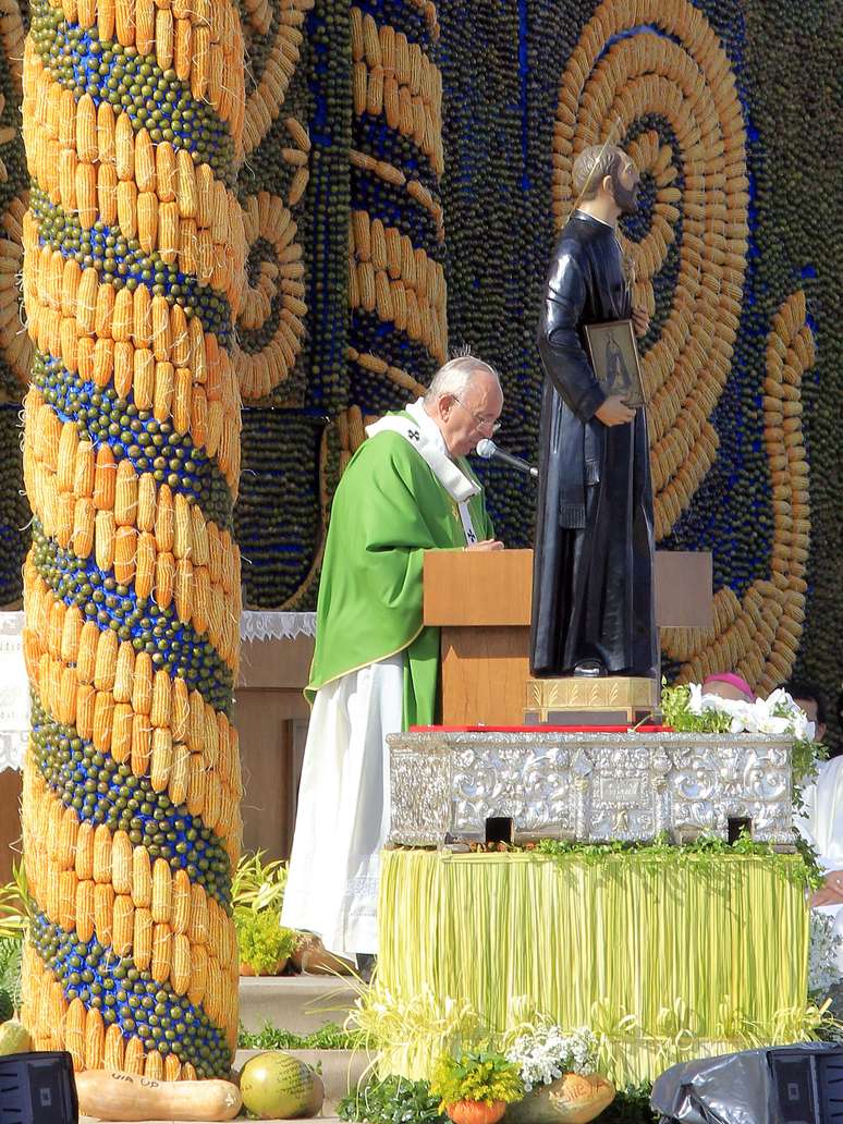 Depois da missa na esplanada de Ñu Guazu, que em guarani significa "Campo Grande" - uma base militar que se transformou em um autêntico lamaçal pelas chuvas dos últimos dias - o papa fez uma autêntica homenagem à cultura popular do país. Cantos populares, leituras e inclusive o pai nosso em guarani e o espetacular altar formado por espigas e sementes locais foram a particularidade da missa celebrada pelo papa Francisco.
