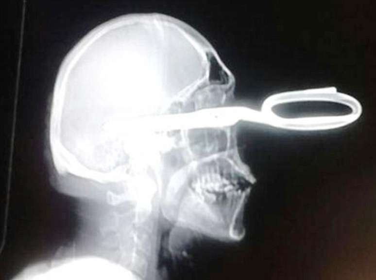 Um homem assustou os médicos de um hospital na cidade de Chihuahua, no noroeste do México, quando chegou na recepção e disse: "Eu tenho um probleminha. Será que alguém pode me ajudar?". Ele estava com parte de uma tesoura fincada em sua cabeça. As informações são do Daily Mail.
