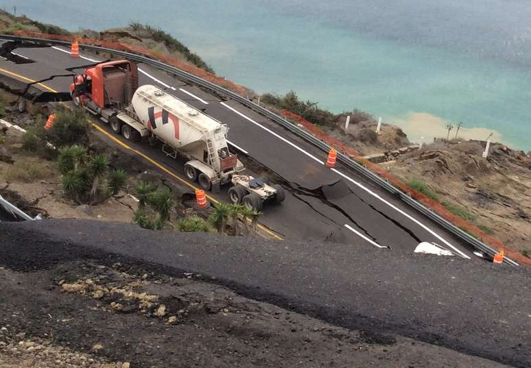PUBLICIDADE Capa Notícias Mundo América Latina América Latina Tremor de terra afunda estrada no norte do México Compartilhar Não há informações sobre vítimas pelo incidente Foto: EFE Autoridades locais informaram que a estrada deve permanecer fechada por semanas Foto: EFE Não há informações sobre vítimas pelo incidente Foto: EFE Trecho da rodovia Ensenada-Tijuana, no Estado mexicano da Baixa Califórnia, afundou mais de 100 m neste sábado após tremores Foto: EFE Compartilhar Publicidade Compartilhar TAGS América Latina Notícias Mundo Publicidade