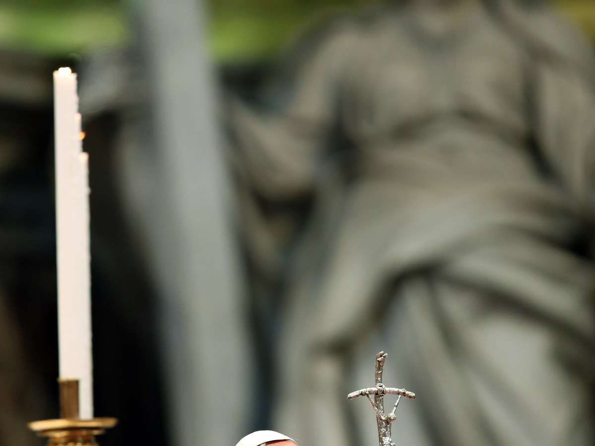 O papa Francisco, de 76 anos, oficia a missa sozinho, embora seja ajudado pelos cardeais Angelo Comastri e Raffaele Farina
