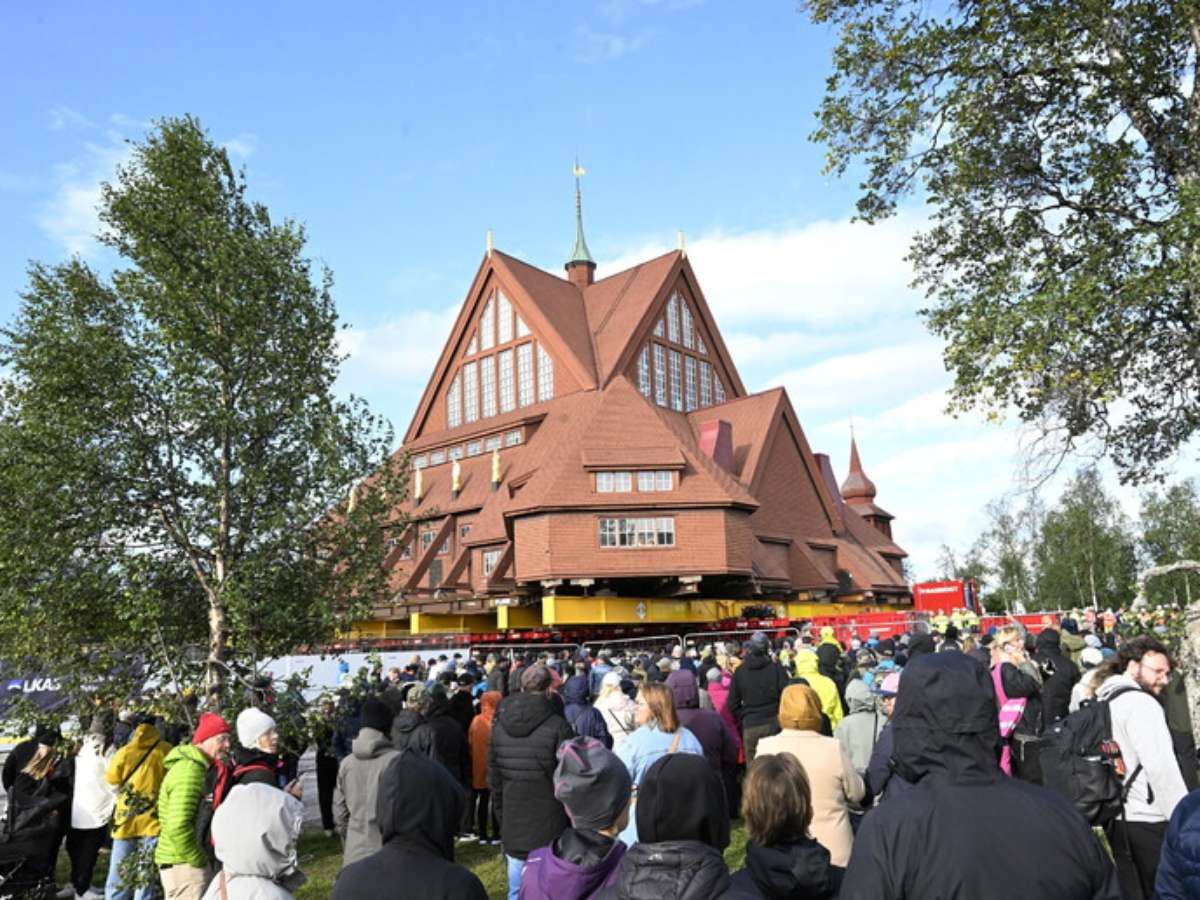 A emblemática igreja de madeira vermelha de Kiruna, no norte da Suécia, iniciou nesta terça-feira (19) sua transferência para uma nova localização, como parte de uma complexa mudança no centro histórico da cidade que permitirá a expansão de uma mina de ferro.