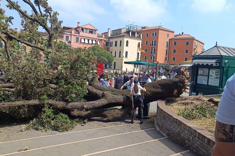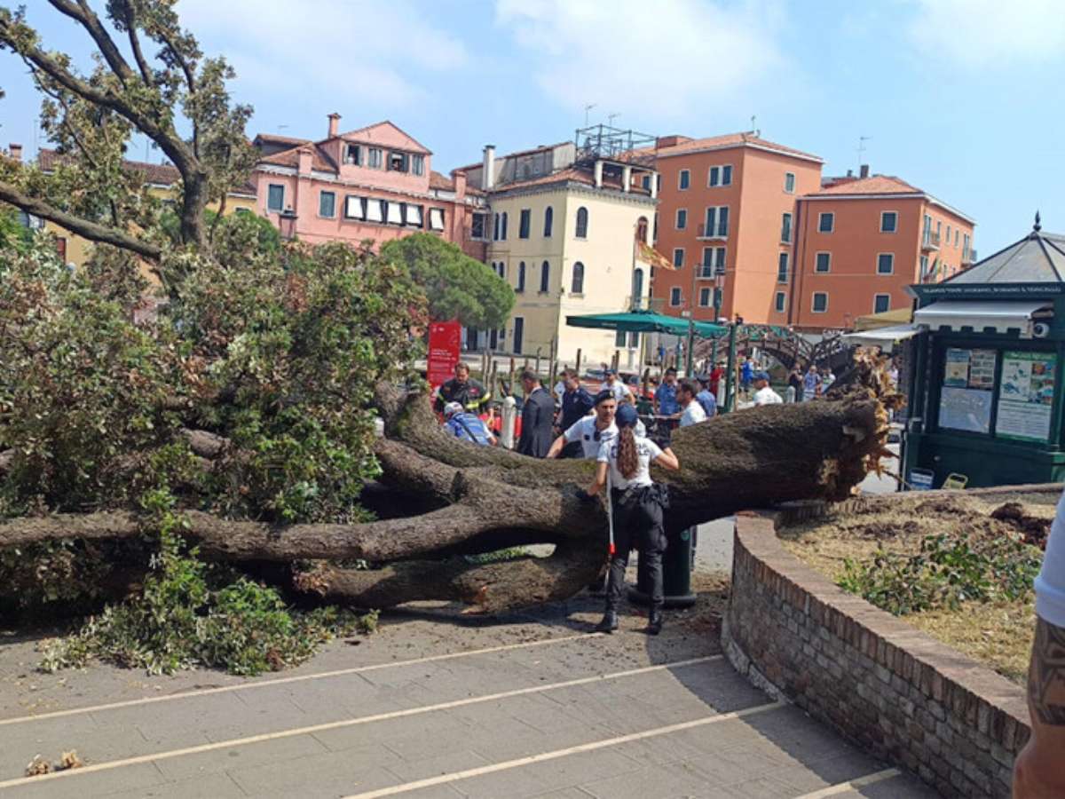 A árvore, com um tronco de grandes proporções, pertencia a um canteiro na praça do terminal de ônibus de Piazzale Roma, área veneziana conhecida como "três pontes", quando caiu de repente.