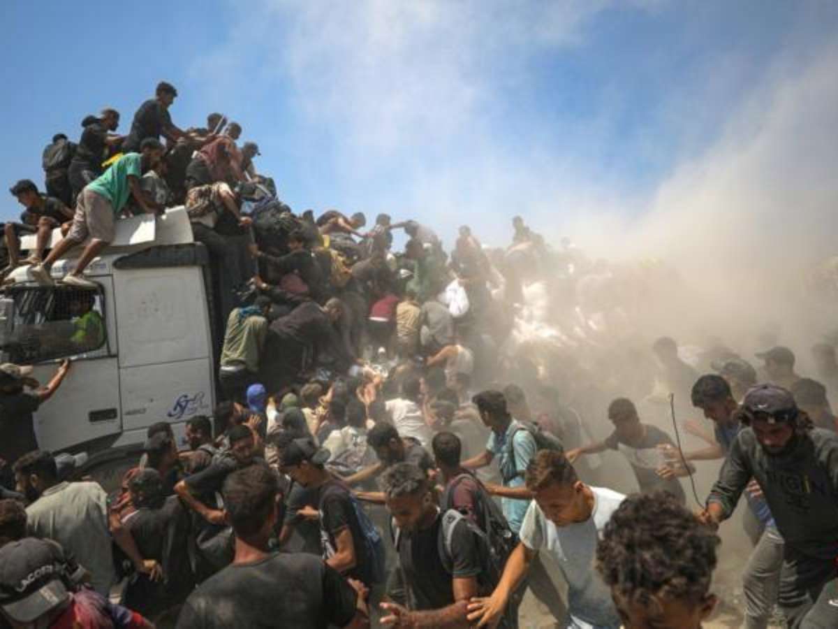 Imagens dramáticas neste domingo (27/7) mostram a população de Gaza se amontoando para tentar alcançar os pacotes de comida que entraram no território após Israel reduzir restrições à entrada de ajuda humanitária.